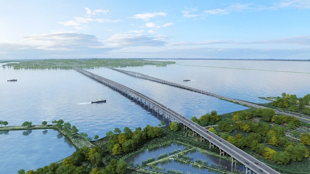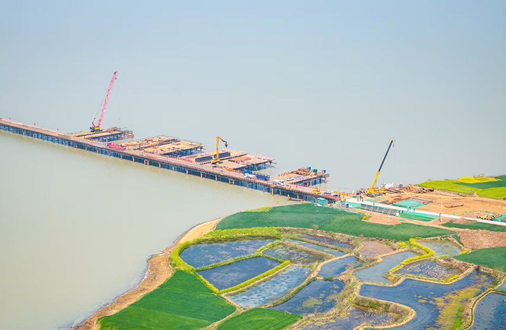 項目已于2024年12月10日獲得先行用地批復(fù),目前項目6處先行開工點已全面開工。城東湖、城西湖特大橋鋼便橋(3.5km、2.5km)分別于4月2日、4月8日全線合龍貫通,完成樁基374根,地系梁2道,路基清表、圓管涵及箱涵預(yù)制有序推進。