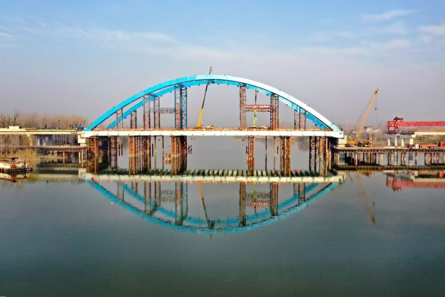 截至目前,大橋主體結(jié)構、橋面鋪裝、主跨主梁安裝、主跨拱橋預制橋面板安裝任務已全部完成,正在緊張有序地進行主橋現(xiàn)澆濕接縫作業(yè)。在開展橋面鋪裝和主跨拱橋安裝施工過程中,項目團隊運用高精度的測量儀器、先進的吊裝設備,精準控制、精確安裝,確保各項工作達標、安全、高效。