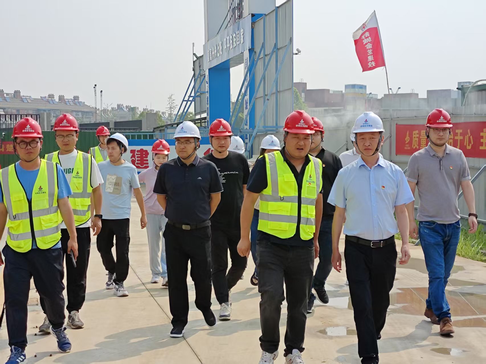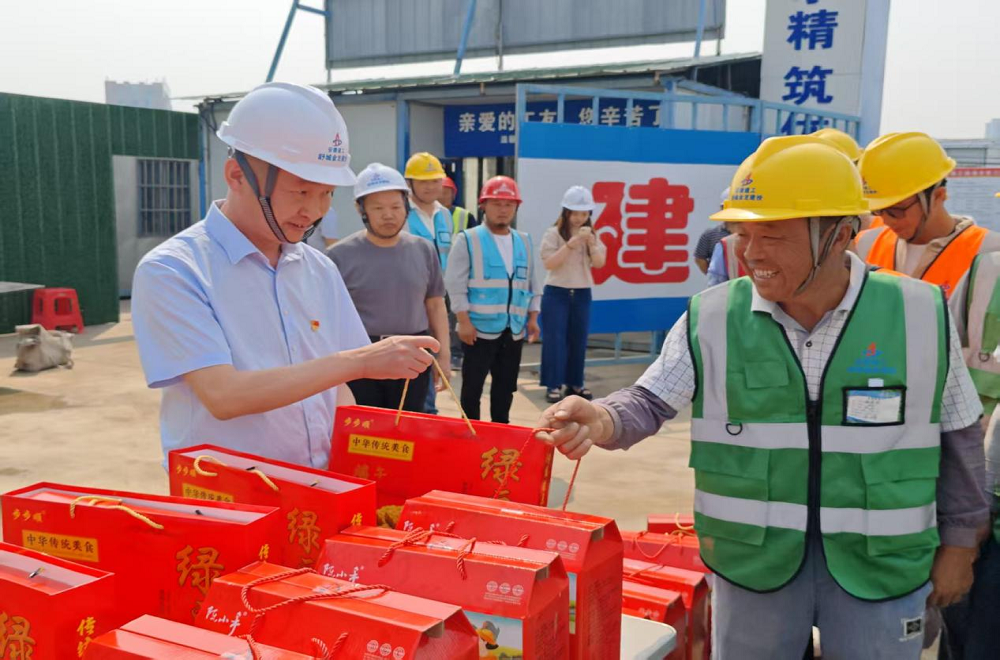 一線送暖,工地粽香話發(fā)展。楊金龍一行抵達(dá)施工現(xiàn)場(chǎng),為奮戰(zhàn)在一線的工人送上粽子、咸鴨蛋、綠豆糕等端午慰問品,向他們致以節(jié)日的問候和誠(chéng)摯的感謝,并叮囑大家在高溫天氣下要注意防暑降溫,確保安全生產(chǎn)。同時(shí),楊金龍圍繞項(xiàng)目建設(shè)進(jìn)度、質(zhì)量管控、安全生產(chǎn)等方面開展實(shí)地調(diào)研,與項(xiàng)目負(fù)責(zé)人深入探討并提出指導(dǎo)性意見。