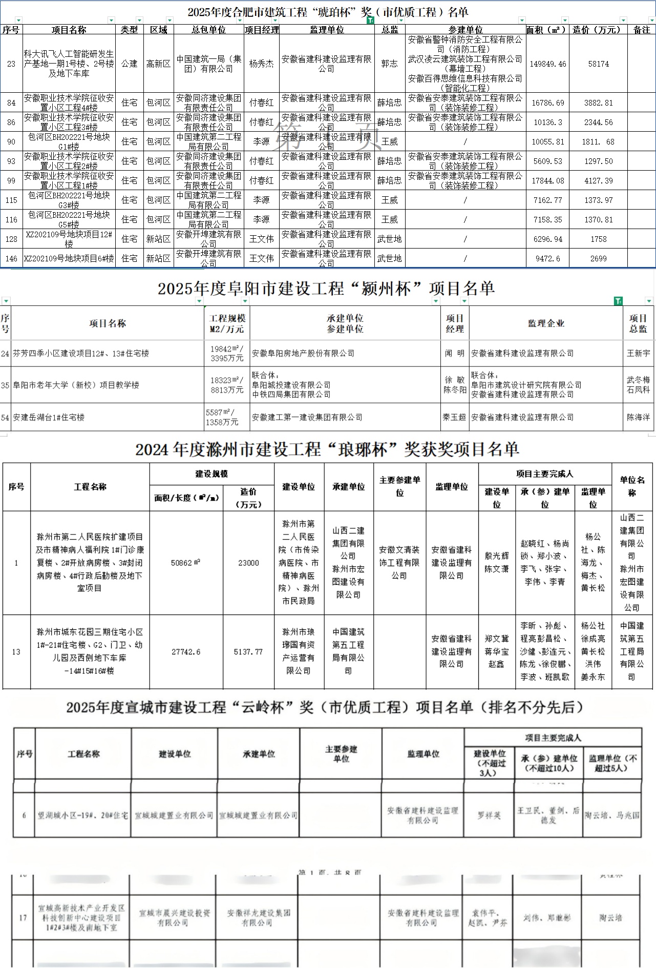 近日,安徽省建科院多個項目獲得"琥珀杯""潁州杯""瑯琊杯""云嶺杯"四項優(yōu)質(zhì)工程獎項,彰顯了我院在建筑工程領(lǐng)域的卓越實力。