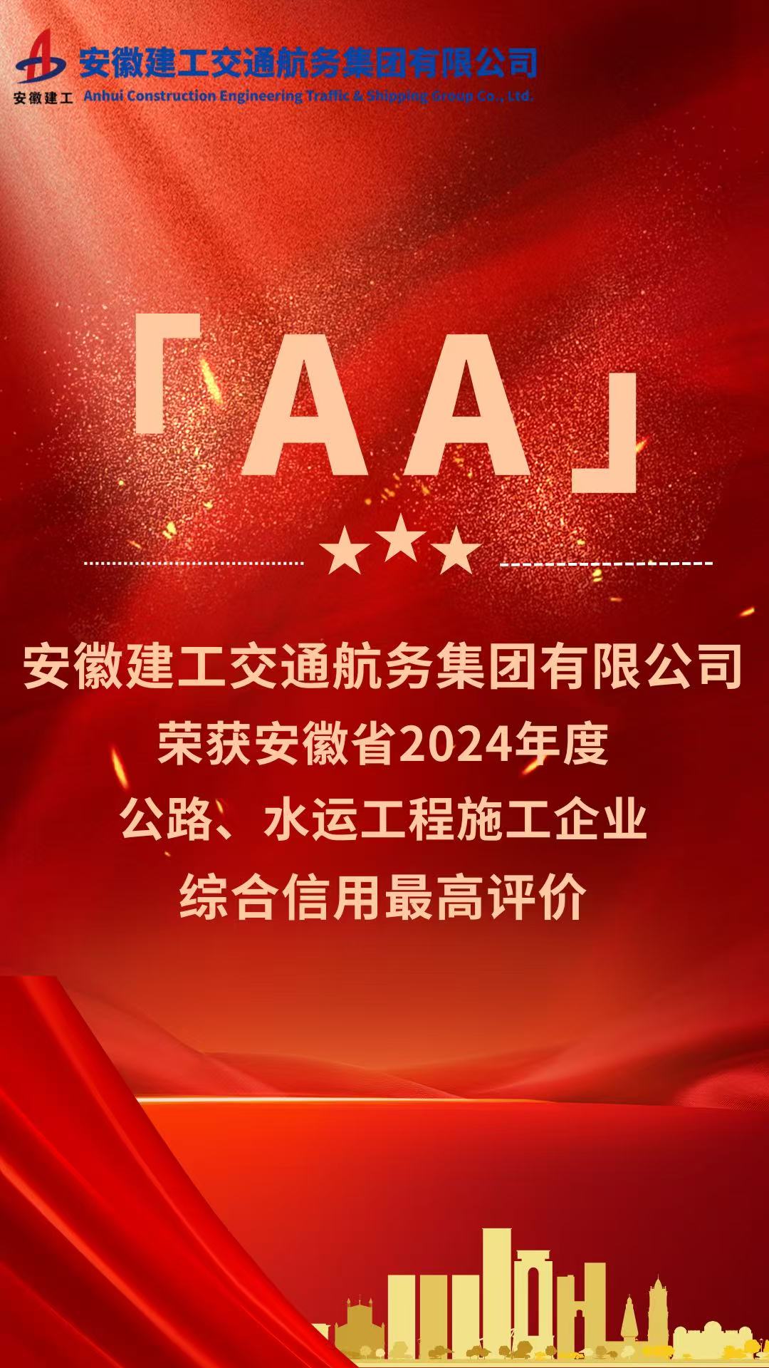 “AA”級信用評價是安徽省公路水運建設(shè)領(lǐng)域信用評價最高等級。獲此殊榮,充分彰顯了公司精湛的履約能力、一流的管理水平和良好的信用形象。
