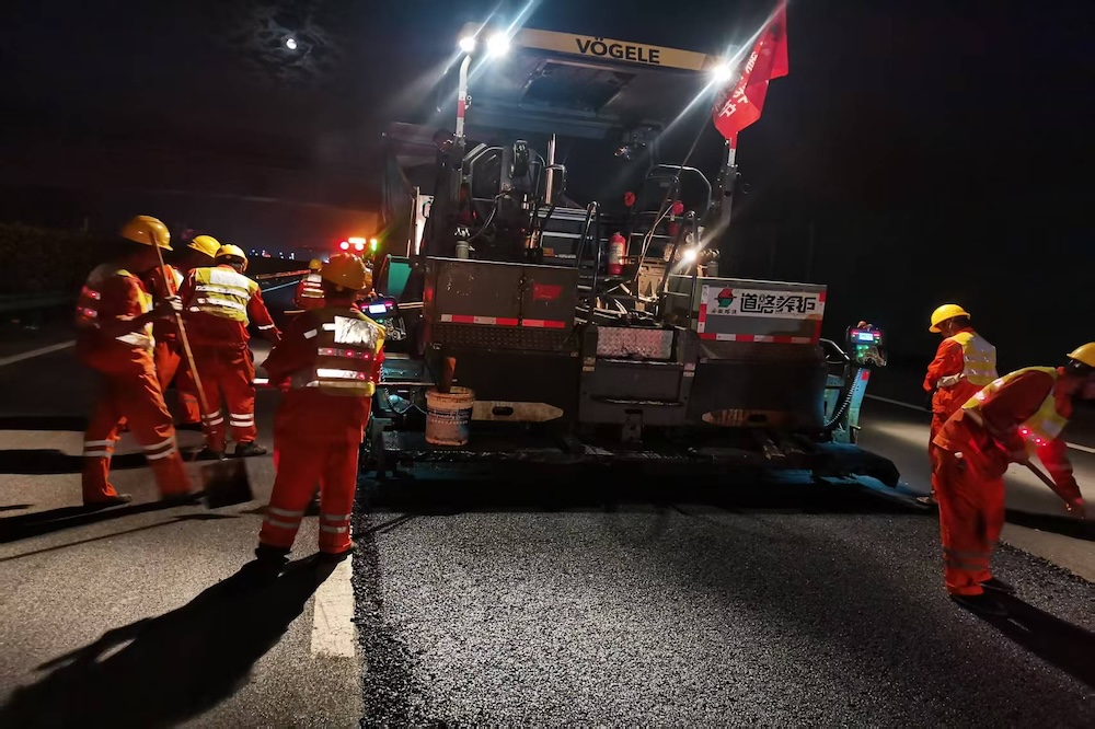 面對(duì)工期緊、任務(wù)重的雙重考驗(yàn),建工建材公司科學(xué)統(tǒng)籌,創(chuàng)新采用“雙站點(diǎn)并行供料”模式,同步啟動(dòng)兩大瀝青生產(chǎn)基地,實(shí)現(xiàn)24小時(shí)不間斷供應(yīng)。施工現(xiàn)場(chǎng)劃分為四個(gè)作業(yè)班組,以“同步推進(jìn)、交叉作業(yè)”戰(zhàn)術(shù)高效協(xié)同,嚴(yán)把質(zhì)量安全關(guān),確保工程進(jìn)度與品質(zhì)雙達(dá)標(biāo)。