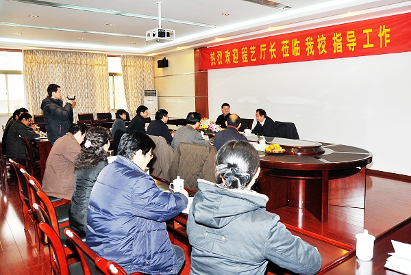 會(huì)上,王禮義校長(zhǎng)首先對(duì)程藝廳長(zhǎng)百忙中蒞臨學(xué)校指導(dǎo)工作表示感謝,并就學(xué)校近幾年的發(fā)展情況,特別是學(xué)校的辦學(xué)理念、辦學(xué)特色、培養(yǎng)模式以及校企聯(lián)手辦學(xué)、突出技能教育和農(nóng)民工培訓(xùn)工作等作了詳細(xì)的匯報(bào)。
