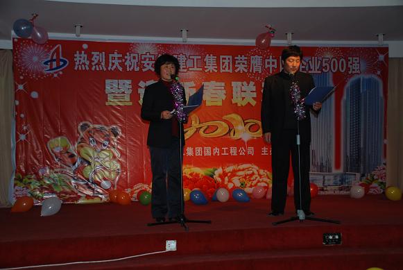 12月30日下午,由國內(nèi)工程公司主辦的熱烈祝賀安徽建工集團(tuán)榮膺中國企業(yè)500強(qiáng)暨迎新春聯(lián)歡會在學(xué)苑大廈多功能廳隆重舉行。集團(tuán)公司董事長、總經(jīng)理胡運(yùn)成,黨委書記張海平,副董事長李長斌,副總經(jīng)理戴良軍,紀(jì)委書記、工會主席劉振武,副總經(jīng)理王元曦,總經(jīng)理助理童宗勝、楊斌,副總會計(jì)師王曉軍,副總工程師宣善宏以及機(jī)關(guān)部門主要負(fù)責(zé)人應(yīng)邀出席。國內(nèi)公司全體員工參加了聯(lián)歡活動。
