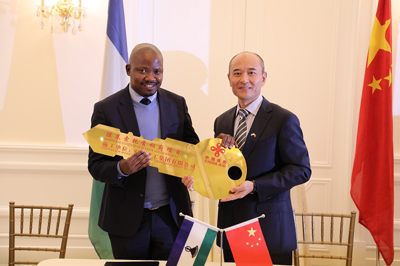 At the ceremony, Ambassador Sun and Hon. Halebonoe Sets’abi, Acting Minister of Foreign Affairs and International Relations, signed the handover certificate of the New State House, and Ambassador Sun also handed over a Symbolic Golden Key to the Lesotho Government.