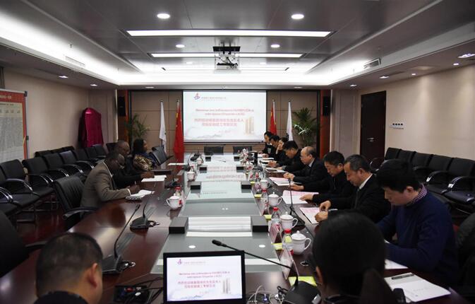 Mr. Zhao Shiyun, Chairman of the Board of ACEG, held a talk with Mr. Christophe Mien Zok, General Manager of Cameroonian Conference Building; Mr. Christophe Mien Zok`s wife and other officials of his delegation on the afternoon of March 4th at Anjian International Mansion, the headquarters of ACEG.