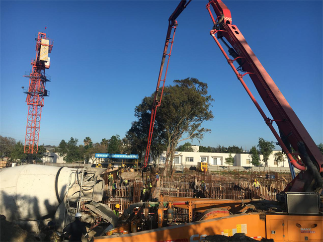 Through joint efforts of all the Project staff and the cooperation and supports from the Owner and the Engineer and the Supervision Bureau of Quality of Algeria, the concrete pouring work for the foundation of the first plot of the Project has been completed satisfactorily at 3 am on May 1 local time.