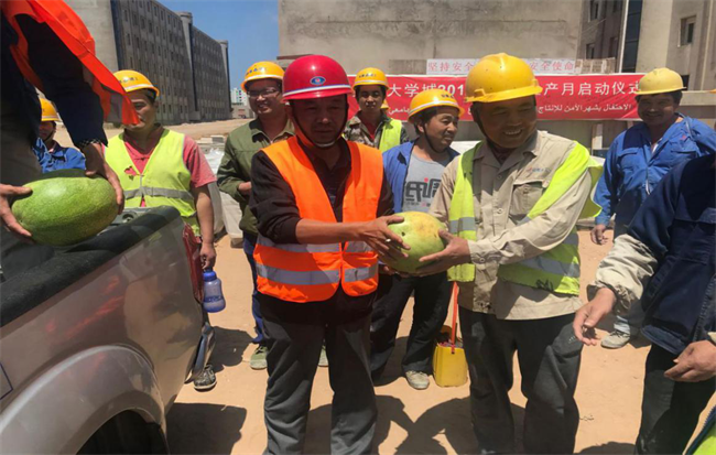 The central gobi and desert regions in southern Algeria enter into the hot summer season in June, the highest temperature there would be more than 40 degrees Celsius. In order to ensure the workers health, all project departments have organized activities named“Giving Cool and Refreshing in summer” and sent the frontline staff watermelons, green bean soup and pumpkin soup and other sunstroke prevention goods and at the same time,publicized and implemented the common senses of preventing heatstroke and avoid accidents that could endanger the health and safety of the workers in high temperature seasons.