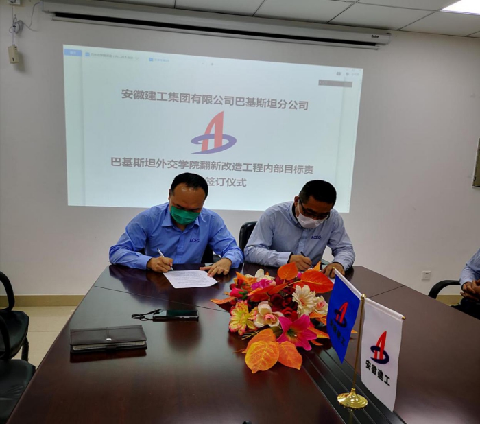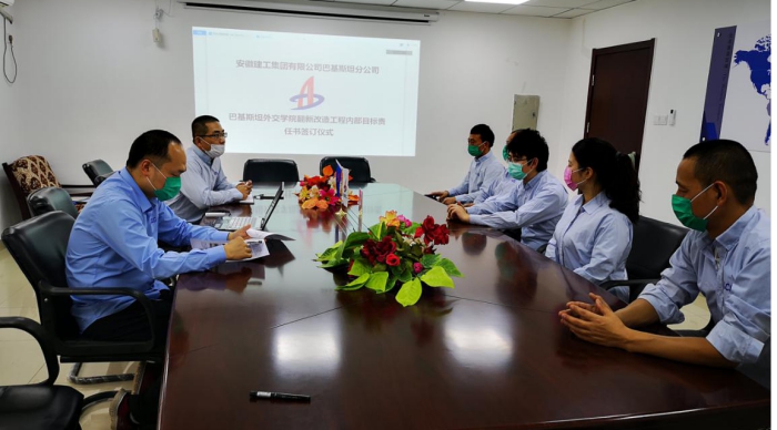 At the meeting, an internal target responsibility statement was signed between Mr. Hu Haitao, on behalf of the Branch, and Mr. Pan Zhengqiang, on behalf of the Project. Mr. Hu Haitao,thereafter,has praised all the staff working for the Project for sticking to their posts and reasonably arranging the production tasks amid the current epidemic situations. He stressed that winning the rehabilitation project of the Pakistani Foreign Service Academy was an important achievement for the Branch staff in such a difficult time and the Project would strictly adhere to the standards of "marketization, contracts, nomlalization, systematism, standardization, refinement and informatization", to enhance the ability of management and fully mobilize the employees'' subjective initiatives in ensuring the quality and schedule targets under the contract.
