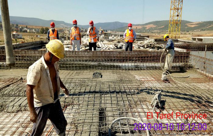El Tarf, Algeria, August 10,2020 / At noon on August 10, the main structures of the 1,000-unit housing project in Algeria`s El Tarf province, contracted by ACEG Algerian Branch, was successfully completed as the last barrel of concrete was poured in place.