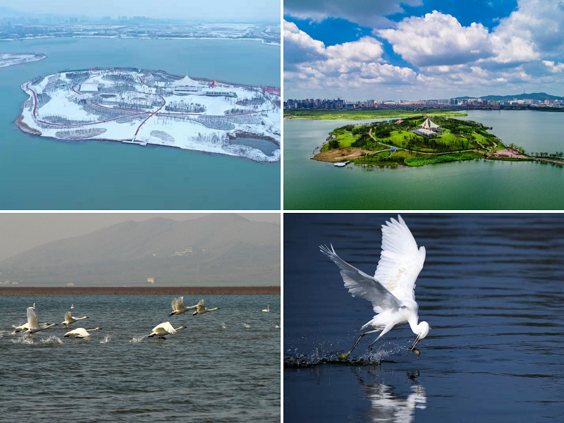 Now, Lujinhu (Green-gold Lake) Mining Area has taken on a new look with a contiguous lake surface of 11,600Mu (1Mu equals to 666.67 Square meters),the land resources have been restored and the living and ecological environment improved, biodiversity has increased. Within the scope of the projectthere are 5 ecological islands, which provide habitats for more than 100 species of birds / animals and nearly 100 species of plants and the areas covered with trees and grasses planted reach tens of thousands of mu, - all these, have formed a veritable green lung for the city, playing a positive role in improving the microclimate in this region.