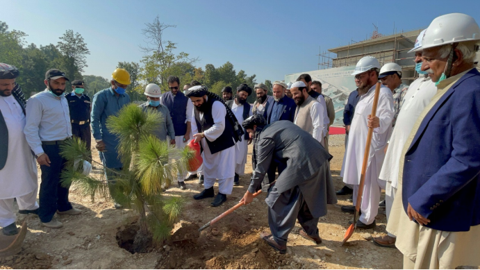 Acting Foreign Minister, H.E. Mr. Amir Khan Muttaqi (fourth from the left) and his delegation arrive at the project site.