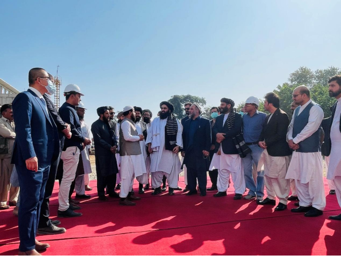Pan zhengqiang briefed H.E. Mr. Amir Khan Muttaqi and his delegation on the overall construction situations of the project and expressed his gratitude to the Ministry of Foreign Affairs of the Interim Afghan Government for its concerns to the project on behalf of ACEG. Zhu Zhenke said that ACEG will, as always, adhere to its enterprise spirit of “Integrity based, Dedication foremost”, keep improving on the implementation of the project and continue the friendly cooperative relations between the two sides.