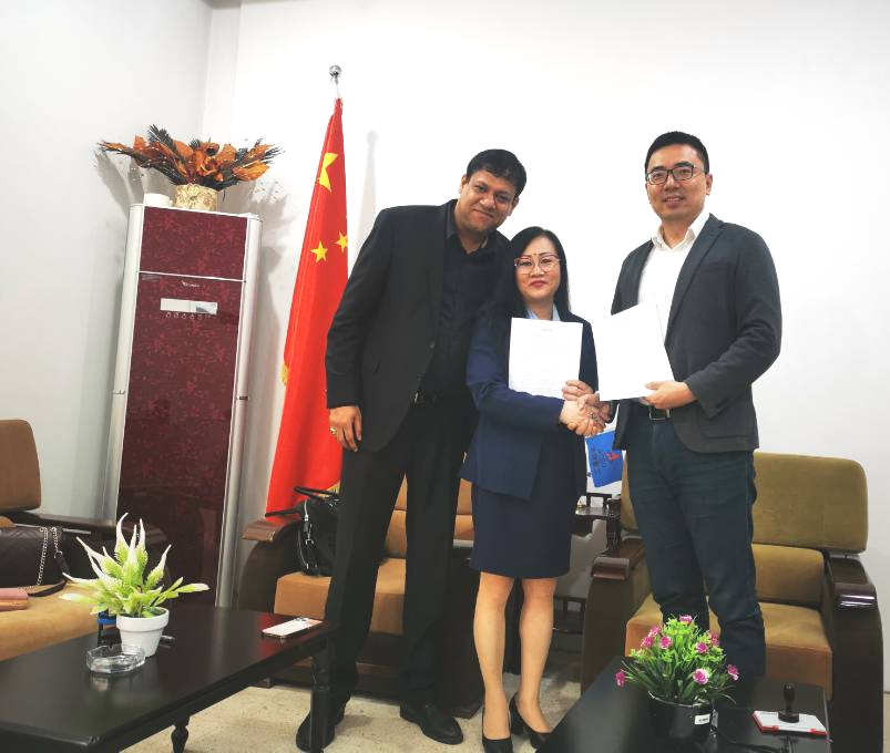 On the afternoon of March 17, Mr. Bian Yang, Assistant to General Manager of ACEG Overseas Business Department, General Manager of ACEG Algerian Branch and Ms. JIANG FUFEN, head of India Labor Service Company, signed the contract of labor service import from India. They exchanged views on management personnel selection from Indian, labor dispatching, market development in Iraq and other issues and reached preliminary consensus.