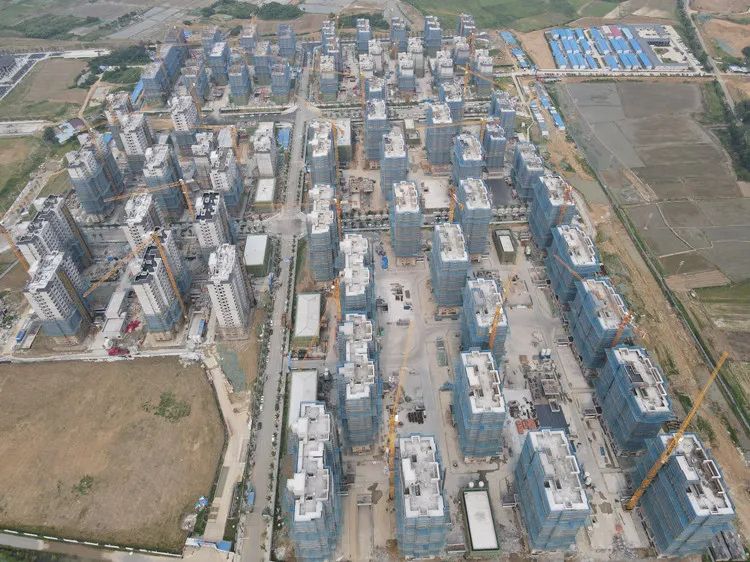 65 residential buildings for the resettlement project phase II of Water Diversion from Yangtze River to Huaihe River in Yandian town, Feixi county, undertaken by ACEG Sanjian Group Co.,Ltd, was topped out on June 16,2023. Mr. He Hongchun, party secretary and chairman of board of ACEG Sanjian Group Co.,Ltd attended the ceremony. He expressed heart-felt thanks for the support from the government of Feixi county and Yandian town, the competent authorities at all levels, the participating units. He stressed that all-around efforts should be made to build demonstration project to meet the people’s expectations.