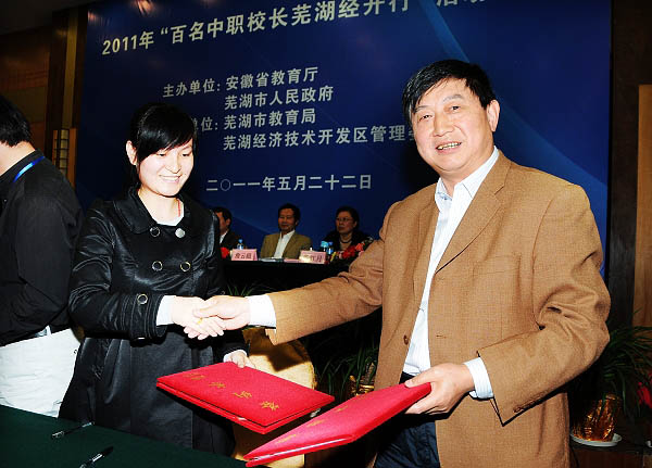 5月22日,王禮義院長(zhǎng)應(yīng)邀赴江城蕪湖市出席了“2011百名中職校長(zhǎng)蕪湖經(jīng)開行”活動(dòng),與信義光伏(安徽)控股有限公司簽訂了校企對(duì)接協(xié)議,并與多家企業(yè)達(dá)成校企合作意向。