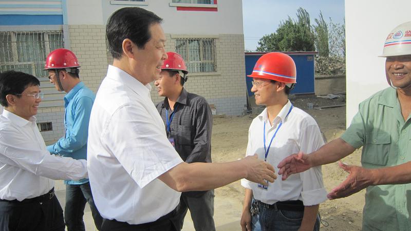 在施工現(xiàn)場,張寶順等興致勃勃地參觀了援疆干部保障樓工程的建設(shè),并認(rèn)真聽取了援疆指揮部指揮長聶愛國和工程項(xiàng)目經(jīng)理樊剛對(duì)工程情況的介紹。當(dāng)了解到工程進(jìn)度、質(zhì)量、安全文明等情況良好時(shí),張寶順十分滿意。他指出:援疆干部保障樓工程是關(guān)系到安徽省援疆干部的生活問題,只有解決了后顧之憂,援疆的同志們才能更好的把精力投入到援疆的事業(yè)中去。安徽三建做的很好,保障樓做的很漂亮,在這里的同志們也很辛苦,工程按照省委省政府的要求,搶抓時(shí)間,高質(zhì)量嚴(yán)要求的完成了,希望再接再厲,做好后續(xù)建設(shè)工作。
