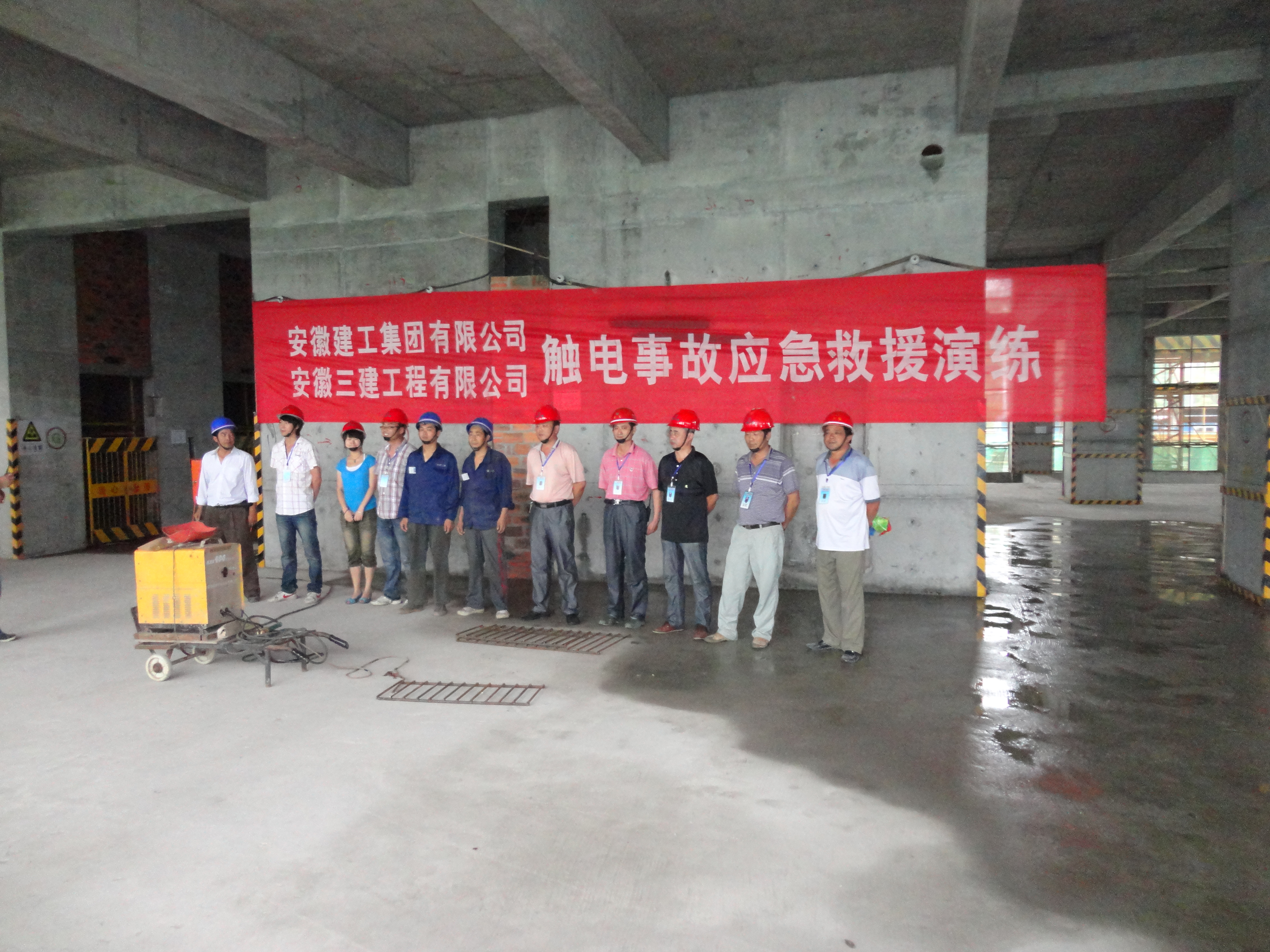 6月24日上午9時,安徽建工集團和安徽三建工程有限公司聯(lián)合舉辦的觸電事故應(yīng)急救援演練活動在安徽三建濱湖高速地產(chǎn)大廈項目施工現(xiàn)場進行。集團公司副總經(jīng)理、總工程師戴良軍,總經(jīng)理助理郭道真,三建公司、國內(nèi)公司、海外公司分管領(lǐng)導(dǎo)、生產(chǎn)(安全)部門負責(zé)人及安全管理人員代表等近百人現(xiàn)場觀摩了此次演練。