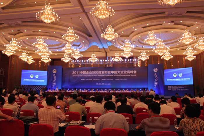 9月3日—5日,2011中國企業(yè)500強發(fā)布暨中國大企業(yè)高峰會在四川隆重開幕。全國政協(xié)原副主席,中國企業(yè)聯(lián)合會、中國企業(yè)家協(xié)會會長王忠禹作主題報告。國務(wù)院國資委副主任黃淑和出席會議并講話。中國企業(yè)聯(lián)合會、中國企業(yè)家協(xié)會常務(wù)副會長兼理事長李德成主持大會。來自全國各地的500強企業(yè)、跨國公司、專家學(xué)者、政府部門的代表共1000余人參加了會議。