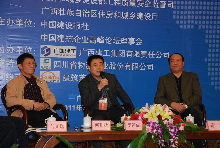 胡運(yùn)成董事長(zhǎng)應(yīng)邀參加主題為“建筑企業(yè)如何通過拓展融資渠道、提升盈利能力等方式,以促進(jìn)企業(yè)創(chuàng)新發(fā)展?”的嘉賓對(duì)話。胡運(yùn)成董事長(zhǎng)結(jié)合安徽建工近年來改革發(fā)展實(shí)際,圍繞對(duì)話主題,就借智借力、整合資源、走差異化之路、打造企業(yè)融資平臺(tái)以及強(qiáng)化項(xiàng)目管理,控制項(xiàng)目風(fēng)險(xiǎn),提高企業(yè)盈利水平等發(fā)表了自己的獨(dú)到見解,贏得了與會(huì)者廣泛關(guān)注和共鳴。