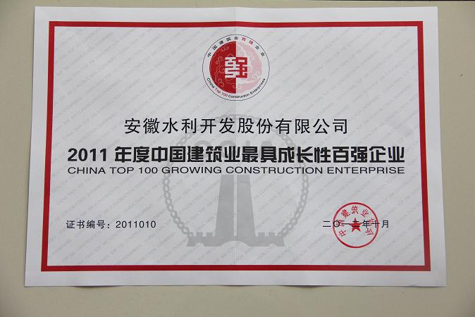 10月22日,從2011年度中國建筑業(yè)企業(yè)雙百強暨2012年度全國建筑業(yè)AAA級信用企業(yè)發(fā)布會上傳來喜訊,安徽水利榮獲2011年度中國建筑業(yè)最具成長性百強企業(yè)第十名。