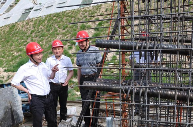 集團(tuán)董事長、黨委書記趙時(shí)運(yùn)(中)踏勘工地現(xiàn)場(chǎng)