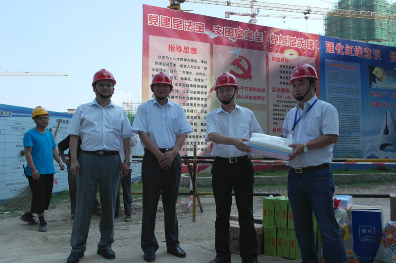 趙總一行首先視察了項(xiàng)目施工現(xiàn)場(chǎng),為項(xiàng)目送去防暑降溫物品,并對(duì)夏季高溫堅(jiān)守崗位的一線職工表示親切慰問(wèn)。