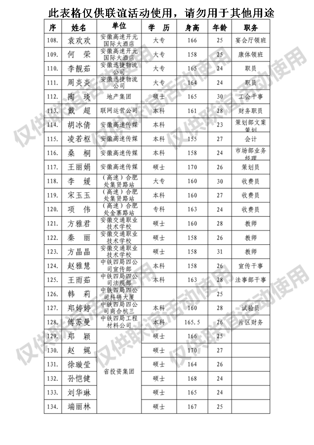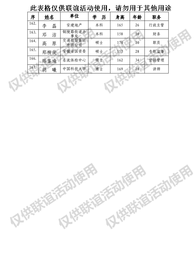 安徽建工集團(tuán)未婚青年交友聯(lián)誼活動(dòng)報(bào)名匯總表(女)