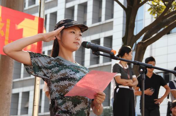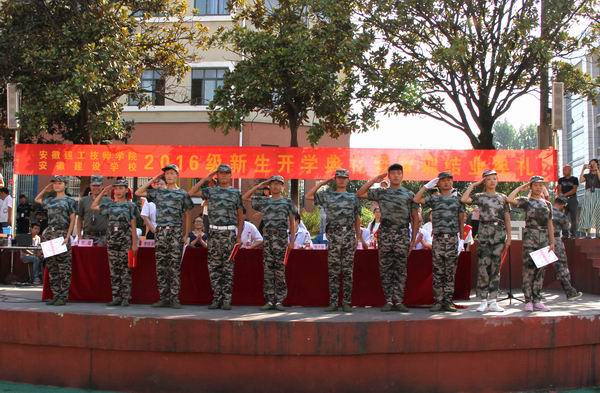 典禮上,軍訓(xùn)學(xué)員們進(jìn)行了分列式、擒敵拳、韻律體操、隊(duì)列會(huì)操、軍體拳和手語表演,向全院師生展現(xiàn)了軍訓(xùn)期間的訓(xùn)練成果。任建設(shè)副院長(zhǎng)宣讀了《關(guān)于2016級(jí)學(xué)生軍訓(xùn)的表彰決定》,對(duì)在10天軍訓(xùn)中表現(xiàn)突出的連隊(duì)和學(xué)員進(jìn)行了表彰。新生代表2016級(jí)幼兒教育專業(yè)的朱群同學(xué)代表全體新生進(jìn)行了發(fā)言。