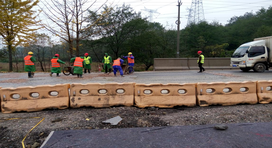 2016年11月22日下午4時(shí)許,由于連續(xù)降雨,加上G318重載車輛較多,導(dǎo)致臨時(shí)通行段東蓉橋兩端路基出現(xiàn)嚴(yán)重坑洼,影響道路通行速度及安全。為此,安徽路港G318改建工程項(xiàng)目經(jīng)理部迅速響應(yīng),緊急組織青年突擊隊(duì)員共計(jì)16人冒雨前去搶修。