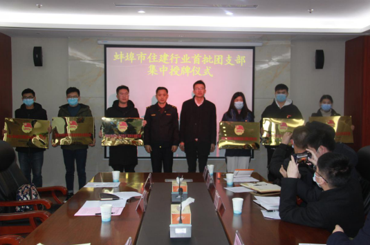 2021年2月2日上午,蚌埠市住房城鄉(xiāng)建設(shè)行業(yè)首批團支部集中授牌儀式在蚌埠市住建局舉行。會議由蚌埠市住建局副縣級領(lǐng)導(dǎo)王明芳主持。蚌埠市住建局黨委書記、局長王家渠,黨委委員、副局長汪文學(xué);蚌埠市團市委黨組副書記韓見,組織部部長、少年部部長雷蕾;蚌埠市建筑管理處黨委書記、主任唐士全,團委書記韓道斌;蚌埠市住建系統(tǒng)團工委書記鄒振飛同志出席授牌儀式。安徽二建公司蚌埠溪湖湖山春曉、山香安置房項目參加市住建行業(yè)首批團支部集中授牌。