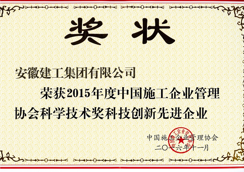 根據(jù)《中國施工企業(yè)管理協(xié)會科學(xué)技術(shù)獎評選管理辦法》的規(guī)定,經(jīng)省協(xié)會推薦、科委辦公室初審、專家網(wǎng)絡(luò)評審、專家委員會評審、科學(xué)技術(shù)委員會審定,中國施工企業(yè)管理協(xié)會做出《中國施工企業(yè)管理協(xié)會關(guān)于表彰2015年度科學(xué)技術(shù)獎的決定》(中施企協(xié)字﹝2016﹞68號),授予安徽建工集團(tuán)等159家企業(yè)科技創(chuàng)新先進(jìn)企業(yè)獎。