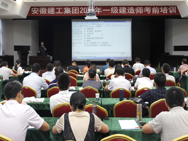 7月24至8月3日,集團(tuán)公司在安建大廈和安徽建工技師學(xué)院舉辦了2017年一級(jí)建造師考前培訓(xùn)班。本次培訓(xùn)班為期8天,共開(kāi)設(shè)建設(shè)工程經(jīng)濟(jì)、建設(shè)工程法規(guī)、建設(shè)工程項(xiàng)目管理三門(mén)公共課和建筑工程、市政公用工程、水利水電工程、公路工程管理與實(shí)務(wù)四個(gè)專(zhuān)業(yè)課程,共計(jì)850余名考生參加了培訓(xùn)。