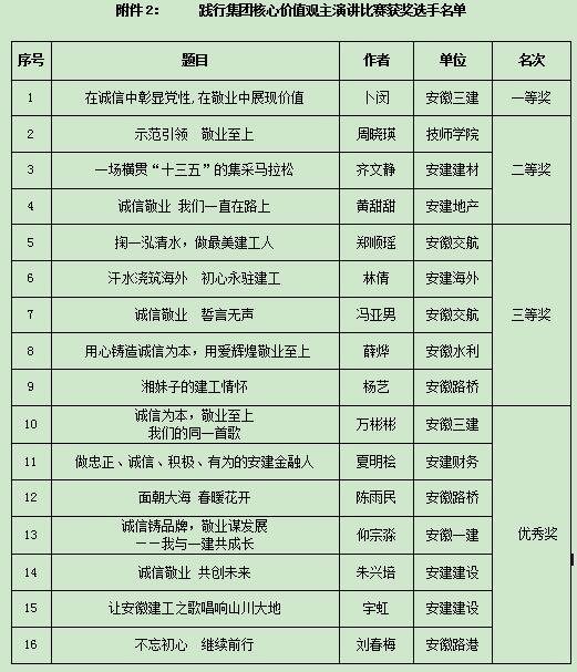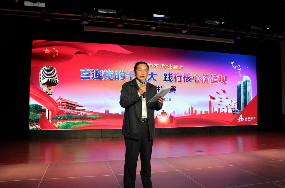 在主持人精彩的開場白之后演講比賽正式拉開序幕,參賽選手圍繞“喜迎黨的十九大,踐行核心價值觀”這一主題,結(jié)合各自工作和生活經(jīng)歷,借助自己設計制作的背景短片或PPT,用真摯的情感、生動的事例,聲情并茂、滿懷激情地講述了安徽建工人立足崗位,弘揚踐行集團核心價值觀的深切體會和感人故事,展現(xiàn)了身邊員工于平凡中奉獻青春、于艱苦中助力改革、于崗位中磨練尖兵的樸實情懷。比賽中,評委們圍繞參賽選手的演講內(nèi)容、演講技巧、演講效果、時間控制、脫稿情況等方面進行了現(xiàn)場綜合考評和打分,并現(xiàn)場宣布比賽結(jié)果;比賽結(jié)束后,領(lǐng)導評委嘉賓為獲獎選手進行了頒獎。