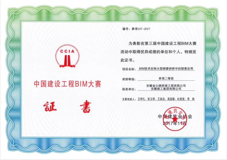 日前,由中國建筑協(xié)會主辦的“建設(shè)工程BIM技術(shù)成果推廣應(yīng)用經(jīng)驗交流會”在廈門召開。會上對第三屆中國建設(shè)工程BIM大賽獲獎單位和個人頒發(fā)榮譽證書。集團公司組織安徽路橋完成的“BIM技術(shù)在特大型鋼管拱橋中的探索應(yīng)用”獲得二等獎,組織安徽三建完成的“中國科學(xué)技術(shù)大學(xué)物質(zhì)科學(xué)教研樓項目BIM技術(shù)應(yīng)用”獲得三等獎。