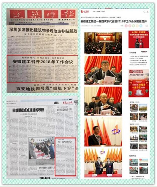 自1月31日集團公司一屆四次職代會暨2018年工作會議勝利閉幕以來,人民網(wǎng)安徽頻道、建筑時報、安徽工人日報等新聞媒體先后刊發(fā)報道,為集團公司2017年取得的成績點贊,新華網(wǎng)、鳳凰網(wǎng)、網(wǎng)易、建筑新網(wǎng)等網(wǎng)絡媒體紛紛轉(zhuǎn)發(fā),引起社會各界強烈反響。