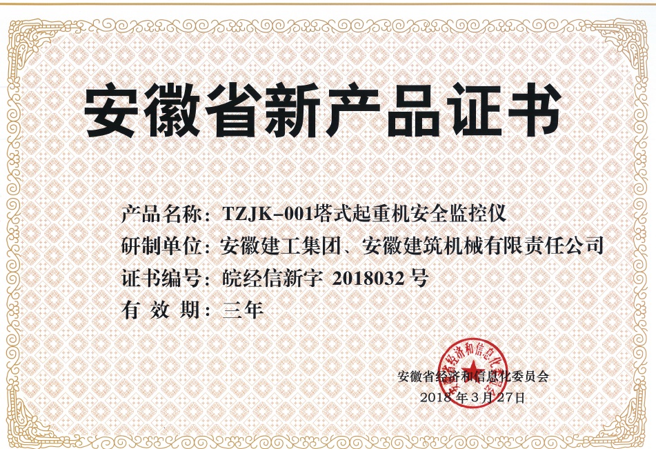 日前,安徽建工集團(tuán)及所屬安徽建機(jī)公司研發(fā)的“TZJK-001塔式起重機(jī)安全監(jiān)控儀”順利通過(guò)安徽省經(jīng)信委省級(jí)新產(chǎn)品鑒定,確認(rèn)為2018年安徽省新產(chǎn)品(第一批)。
