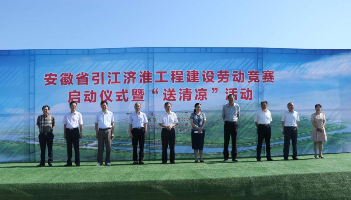 7月18日,由安徽省總工會、安徽省勞動競賽委員會辦公室、安徽省引江濟(jì)淮工程領(lǐng)導(dǎo)小組辦公室合作主辦的安徽省引江濟(jì)淮工程建設(shè)勞動競賽啟動儀式暨“送清涼”活動在安徽水利派河口泵站項目及小合分線項目成功舉辦。安徽省人大常委會副主任、省總工會主席李明參加活動,并就有關(guān)工作進(jìn)行指示。省總工會副主席李素萍、省總工會經(jīng)審會主任胡東輝、省國資委監(jiān)事會主席鄭成雨、合肥市總工會主席張業(yè)鎖及地方有關(guān)領(lǐng)導(dǎo)、省引江濟(jì)淮集團(tuán)領(lǐng)導(dǎo)出席活動,集團(tuán)總經(jīng)理劉家靜、副總經(jīng)理許克順受邀出席了此次活動,安徽水利工會主席朱樂華陪同參加了活動。