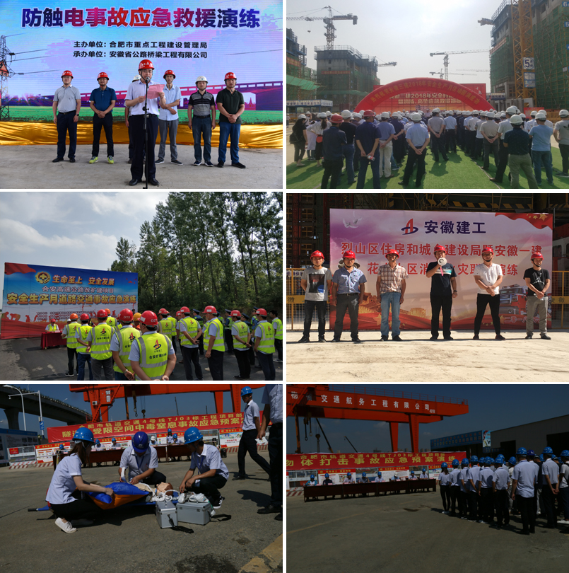 安徽水利、安徽路橋、安徽交航、安徽三建、安徽二建、安徽一建、路橋集團、安徽路港、安建建設(shè)、安建建材、安建投資等單位開展了應(yīng)急預案、應(yīng)急知識、自救互救、避險逃生方面的培訓和消防、觸電、高處墜落、防汛、水上救援、高溫中暑、坍塌、地下密閉空間窒息等生產(chǎn)安全事故應(yīng)急演練活動,應(yīng)急預案演練踐行了“不發(fā)生、控得住、治得了”的積極防控理念,“以練為戰(zhàn)”提升了應(yīng)急處置能力,提高了應(yīng)對事故、防災(zāi)避險、快速反應(yīng)和協(xié)調(diào)作戰(zhàn)能力。