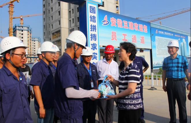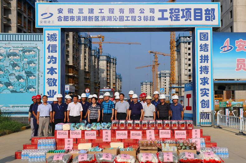 8月7日下午,省住建廳黨組書記、廳長趙馨群,副廳長吳桂和一行在集團公司總經理、黨委副書記劉家靜,安徽三建公司董事長、黨委書記左登宏等陪同下,來到安徽三建公司濱湖沁園產業(yè)化項目,看望和慰問奮戰(zhàn)在施工一線干部職工,調研集團公司夏季防暑降溫工作,實地察看了施工現(xiàn)場并送來防暑降溫用品。