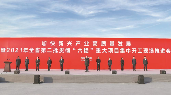 2月18日下午,加快新興產(chǎn)業(yè)高質(zhì)量發(fā)展暨2021年全省第二批貫徹“六穩(wěn)”重大項目集中開工現(xiàn)場推進會在蚌埠市舉行。