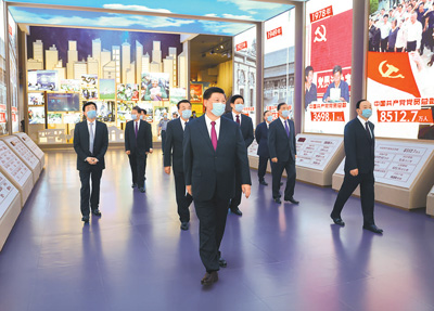 在慶祝中國(guó)共產(chǎn)黨成立100周年之際,中共中央總書記、國(guó)家主席、中央軍委主席習(xí)近平18日前往中國(guó)共產(chǎn)黨歷史展覽館,參觀“‘不忘初心、牢記使命’中國(guó)共產(chǎn)黨歷史展覽”,并帶領(lǐng)黨員領(lǐng)導(dǎo)同志重溫入黨誓詞。他強(qiáng)調(diào),黨的歷史是最生動(dòng)、最有說服力的教科書。我們黨的一百年,是矢志踐行初心使命的一百年,是篳路藍(lán)縷奠基立業(yè)的一百年,是創(chuàng)造輝煌開辟未來的一百年?;赝^往的奮斗路,眺望前方的奮進(jìn)路,必須把黨的歷史學(xué)習(xí)好、總結(jié)好,把黨的寶貴經(jīng)驗(yàn)傳承好、發(fā)揚(yáng)好,銘記奮斗歷程,擔(dān)當(dāng)歷史使命,從黨的奮斗歷史中汲取前進(jìn)力量。要教育引導(dǎo)廣大黨員、干部通過參觀學(xué)習(xí),更加自覺地不忘初心、牢記使命,增強(qiáng)“四個(gè)意識(shí)”,堅(jiān)定“四個(gè)自信”,始終在思想上政治上行動(dòng)上同黨中央保持高度一致,堅(jiān)定理想信念,學(xué)好用好黨的創(chuàng)新理論,賡續(xù)紅色血脈,發(fā)揚(yáng)光榮傳統(tǒng),發(fā)揮先鋒模范作用,團(tuán)結(jié)帶領(lǐng)全國(guó)各族人民,更好立足新發(fā)展階段、貫徹新發(fā)展理念、構(gòu)建新發(fā)展格局,全面做好改革發(fā)展穩(wěn)定各項(xiàng)工作,匯聚起全面建設(shè)社會(huì)主義現(xiàn)代化國(guó)家、實(shí)現(xiàn)中華民族偉大復(fù)興中國(guó)夢(mèng)的磅礴力量。