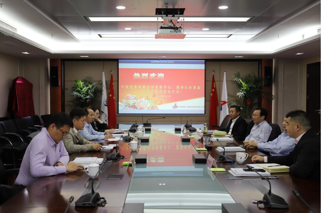 10月23日,建工控股黨委書記、董事長趙時運在安建國際大廈會見了來訪的中核投資有限公司黨委書記、董事長趙翼鑫一行,并主持召開座談會。