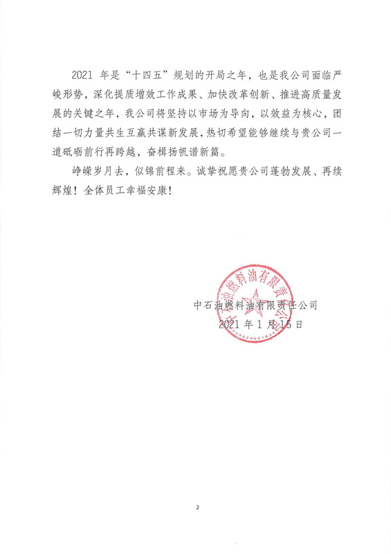 此次中石油燃料油公司給安建建材送來(lái)感謝信,標(biāo)志著雙方合作邁向了一個(gè)新的臺(tái)階。隨著雙方的合作升級(jí),相信在未來(lái)能夠繼續(xù)深入探討共贏新模式,開(kāi)辟合作新征程。