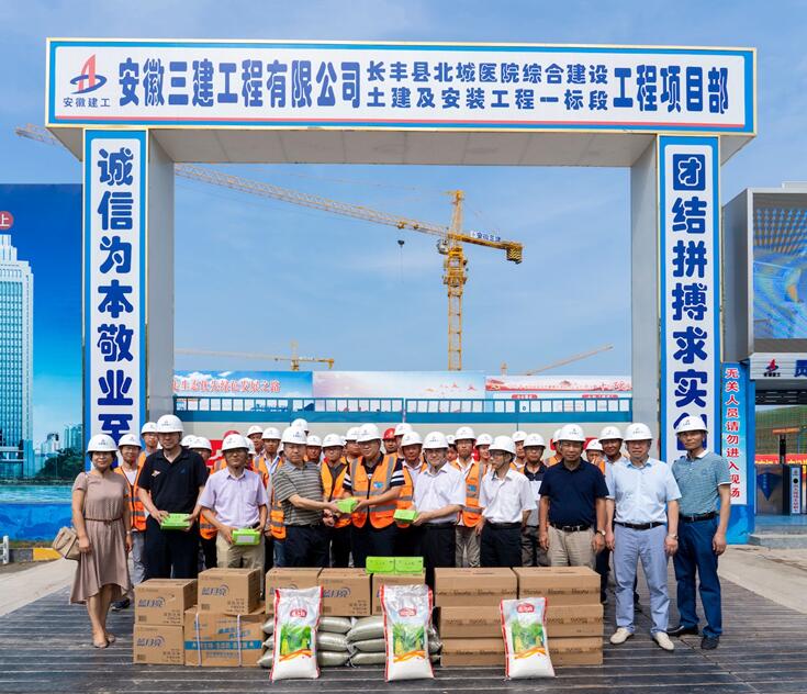 7月24日上午,建工控股總法律顧問(wèn)申玉恩冒著高溫酷暑,來(lái)到安徽三建長(zhǎng)豐縣北城醫(yī)院項(xiàng)目慰問(wèn)奮戰(zhàn)在施工一線的干部職工,為他們送去了防暑降溫用品,并深入一線,實(shí)地察看了施工現(xiàn)場(chǎng)??毓煞墒聞?wù)部部長(zhǎng)王勇、信訪保衛(wèi)部部長(zhǎng)駱新農(nóng),三建公司黨委書(shū)記、董事長(zhǎng)左登宏、紀(jì)委書(shū)記、工會(huì)主席李家保等陪同慰問(wèn)。