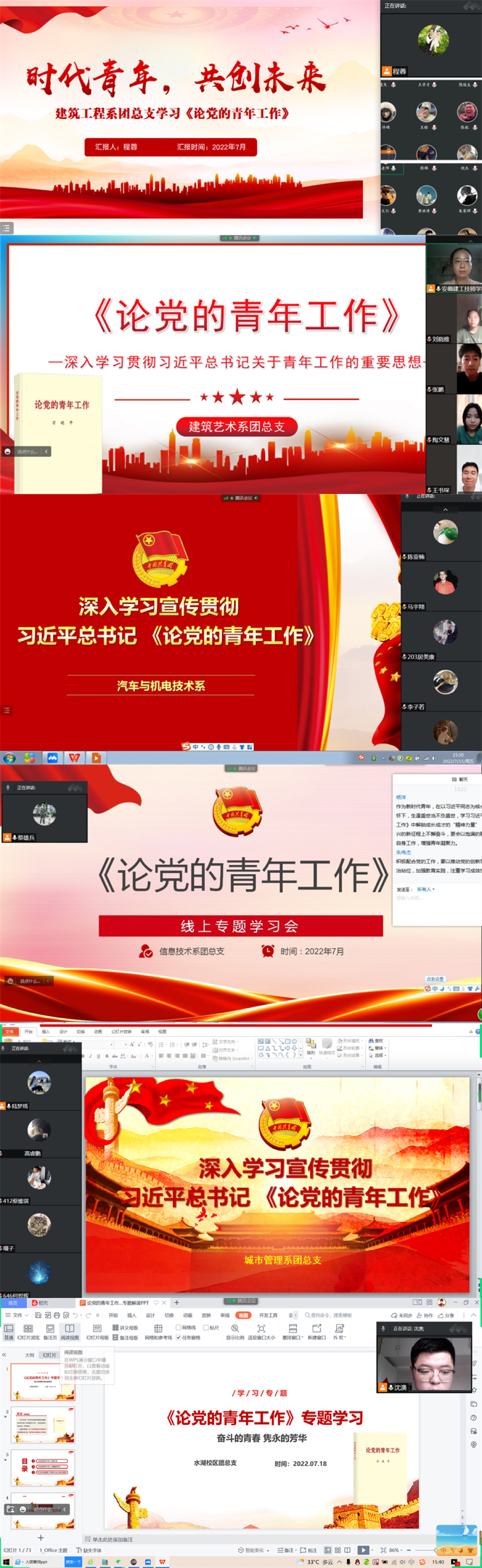 為深入學(xué)習(xí)宣傳貫徹習(xí)近平總書記《論黨的青年工作》精神,近日,安徽建工技師學(xué)院團委按照學(xué)院黨委和集團團委工作部署組織全體團員迅速行動,掀起學(xué)習(xí)宣貫熱潮。通過開展線上專題學(xué)習(xí)會組織全體團員開展學(xué)習(xí)討論,截至目前,共組織開展專題學(xué)習(xí)研討會6場,參與人數(shù)500余人次。