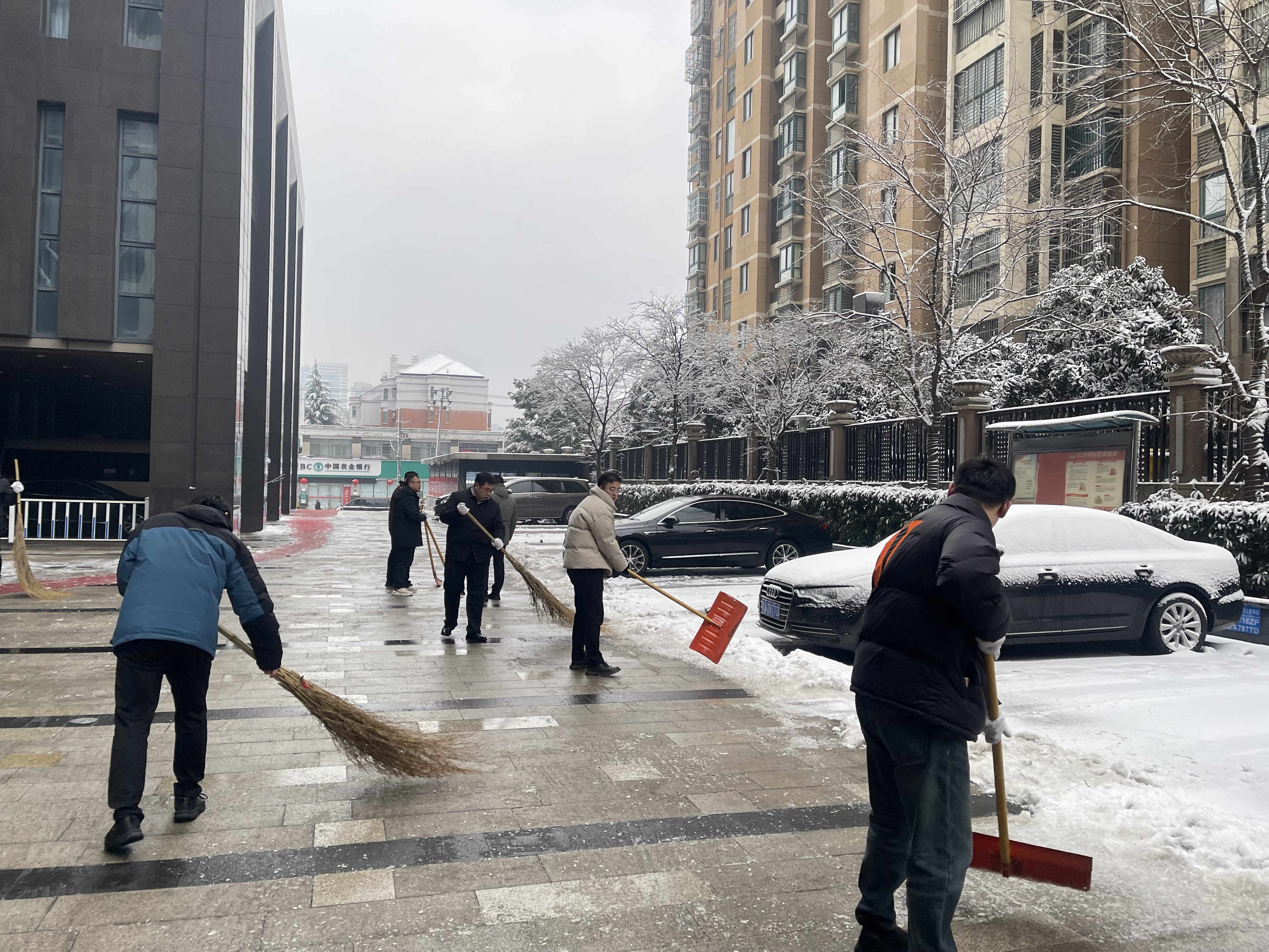2024年的第一場(chǎng)雪,在立春時(shí)節(jié)悄然而至。大雪紛飛為城市增添別樣的景致,也為大家出行帶來(lái)了不便。為進(jìn)一步發(fā)揮集團(tuán)機(jī)關(guān)黨組織的戰(zhàn)斗堡壘和黨員的先鋒模范作用,集團(tuán)機(jī)關(guān)黨委以雪為令,號(hào)召機(jī)關(guān)各支部召集黨員和團(tuán)員志愿者,在安建大廈周邊開(kāi)展掃雪除冰行動(dòng),機(jī)關(guān)所屬各支部迅速響應(yīng)。