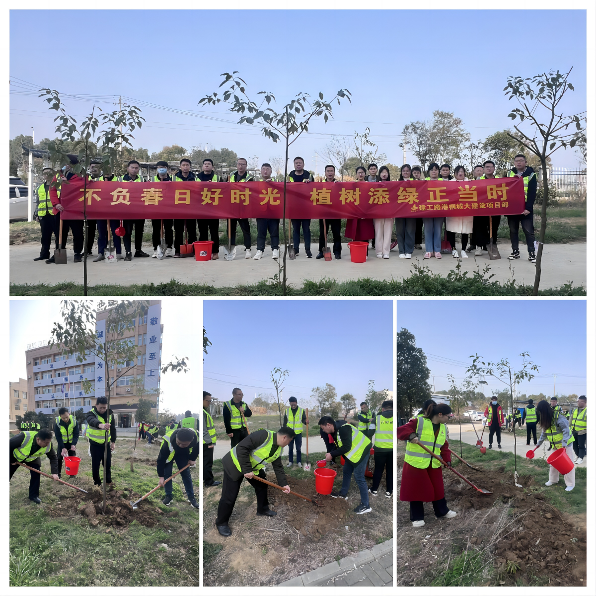 桐城大建設(shè)項目黨支部組織職工在項目部駐地開展“不負(fù)春日好時光 植樹添綠正當(dāng)時”主題植樹活動。