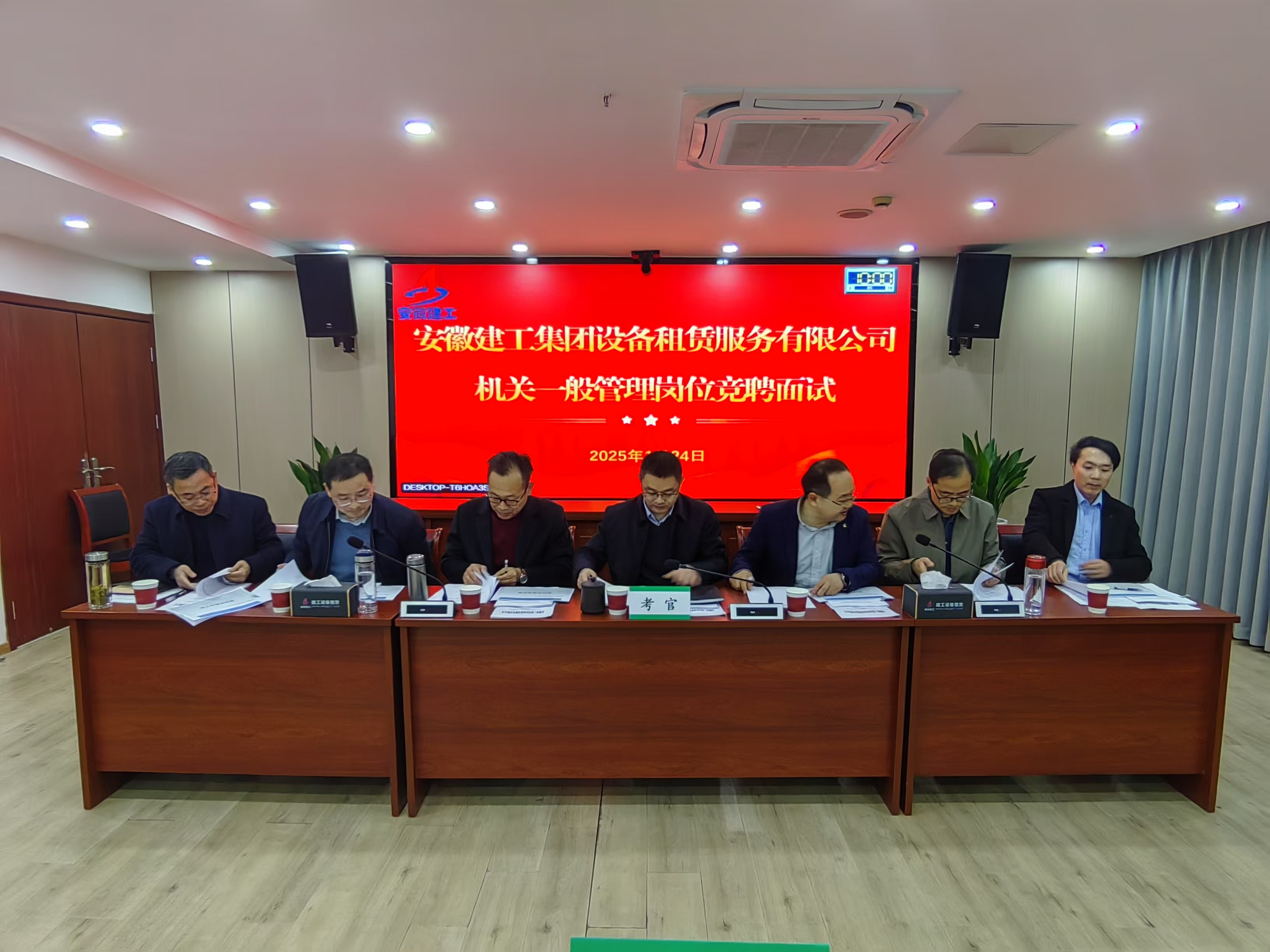 1月24日,設(shè)備租賃公司在決策大廈12樓會議室舉行機(jī)關(guān)一般管理崗位競聘面試,邀請了安徽建筑大學(xué)3位外部專家共同擔(dān)任面試考官,共有40人報(bào)名參加了此次競聘。