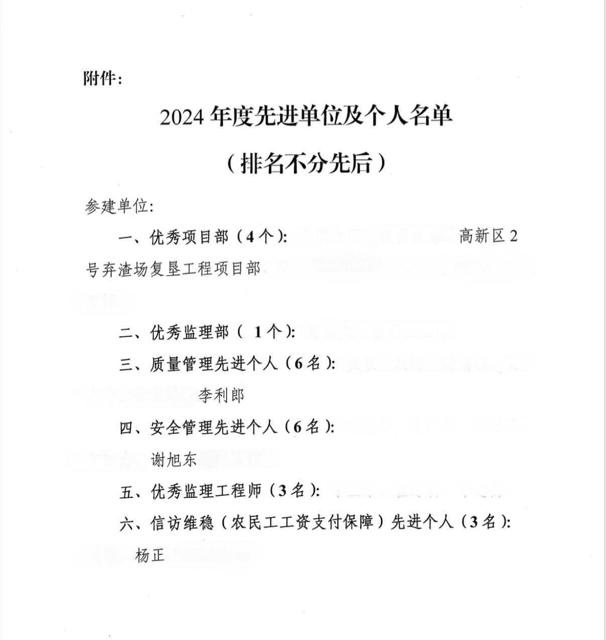 近日,建工路港高新區(qū)2號棄渣場復(fù)墾工程項目部受到業(yè)主單位安徽省引江濟淮工程有限責(zé)任公司合肥建管處表彰,合肥建管處授予項目部“優(yōu)秀項目部”榮譽稱號,授予項目職工李利郎“質(zhì)量管理先進個人”、謝旭東“安全管理先進個人”、楊正“信訪維穩(wěn)(農(nóng)民工工資支付保障)先進個人”榮譽稱號。